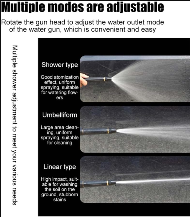 Ce pistolet d'eau en métal offre une performance exceptionnelle et une polyvalence incomparable. Que vous ayez besoin de nettoyer votre voiture, de laver vos fenêtres ou d'arroser votre jardin, ce pistolet haute pression vous simplifiera la tâche.