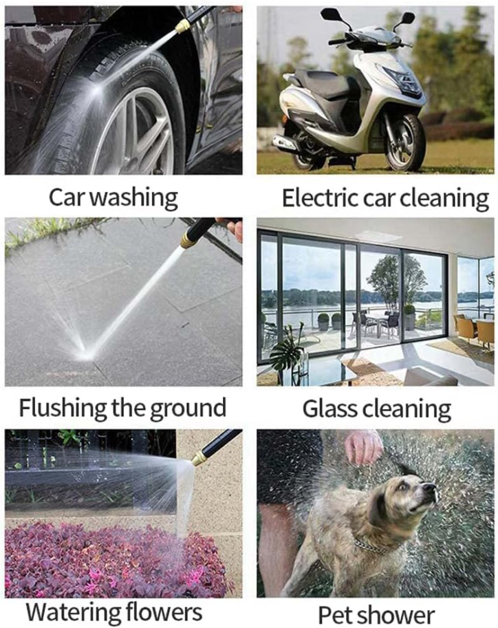 Nettoyage de Voiture : Éliminez la saleté, la boue et les taches de votre voiture avec facilité. Obtenez un résultat professionnel sans avoir à vous rendre au lavage auto.Lavage de Fenêtre : Lavez vos fenêtres, baies vitrées et vérandas sans laisser de traces ni de gouttes. Obtenez des vitres étincelantes en un rien de temps.